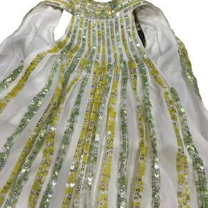 Ranna Gill Yellow Green Shimmer Channel Mini Dress XS