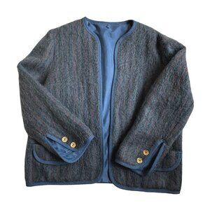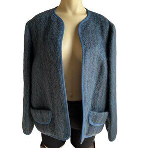 Rannoch Design Blazer Jacket Gray Blue Wool Mohair Open Front 14 VTG Scotland