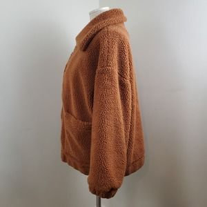 Get cozy in this super cute Ransom | Faux Fur Teddy Coat Full Zip Sherpa Pockets Camel Tan Brown. Silver hardware. Bomber. Women's Medium