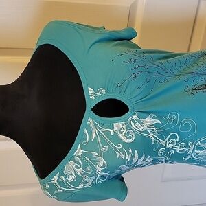 Beautifully designed Ransom size medium womens shirt. Shirt is light green/mint green and has a lovely design with roses, flowers, and silver studs. Shirt is preloved, and in great condition!