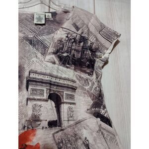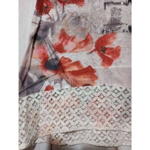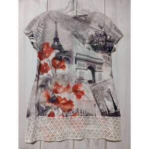 Ransom Shirt Ladies Medium Gray Red Floral Short Sleeve Paris Embellished Lace T