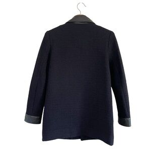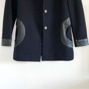 Raoul Boucle Wool Leather Trim Button Front Jacket Mixed Media in Dark Navy / Black, Size 2.