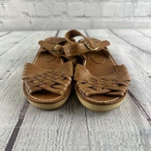 Rapallo Genuine Leather Slingback Brown Woven 528-22526-528-9500 Sandals Size 5M