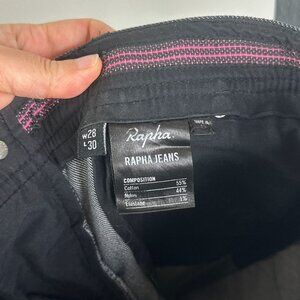 Rapha Cycling Premium Denim Jeans Black Standard Distressed Stretch Fumer 28x30