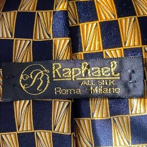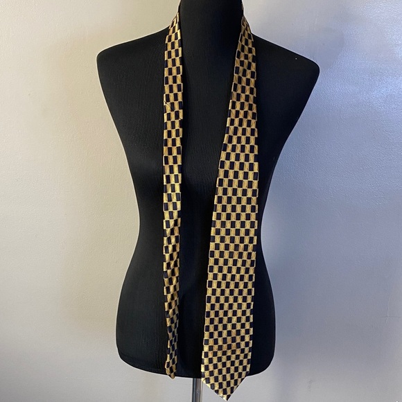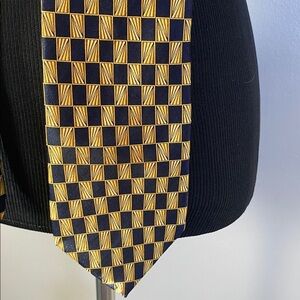 Raphael All Silk Tie Elegant checkered silk tie in black and gold. In nice condition