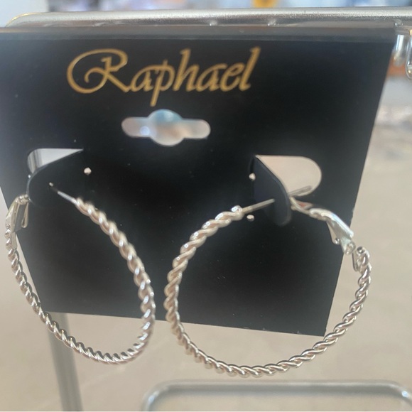 Elegant Raphael silver hoop earrings with a twisted design. Perfect for adding a touch of sophistication to any outfit.