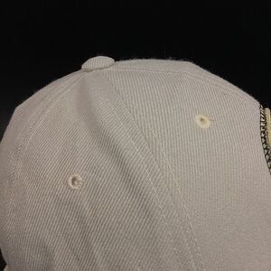 This hat is in great condition! Light discoloration on the inside of the brim. One size/adjustable with a hook & loop closure.