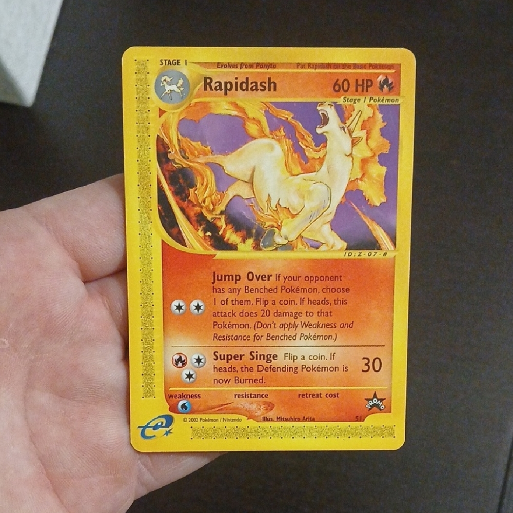 Black Star Promo Rapidash E-Reader, card is in lightly played condition. Non-holo rare, card is set in a soft sleeve.