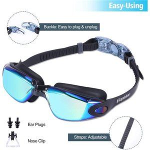 -Easy to use. One click buckle with quick adjustable straps. Including two individual earplugs and a nose clip