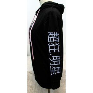 Rapture Star Black Panda Sweatshirt Hoodie Women's S Pink String Accent Pullover