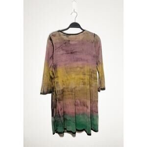 Raquel Allegra Basic Women's Long Sleeve Lightweight T Shirt Dress Colorful Abstract Lavender Yellow Pink Green Black