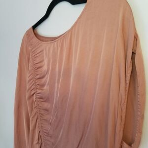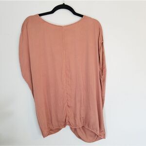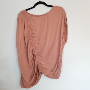 This is petal pink cotton asymmetric gathered front T-shirt from Raquel Allegra. The color is dusky petal pink. It is in excellent pre-owned condition. Worn very lightly.