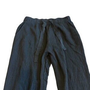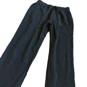 Raquel Allegra Black Gauze Pull-On Pants Contrast Trim Wide Leg Size 2 Large