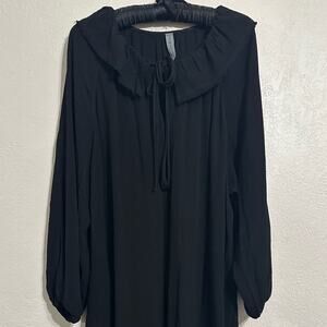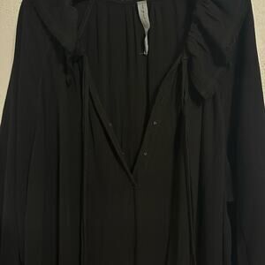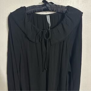 Raquel Allegra Black Peasant Dress size 0 Midi Ruffle Neck