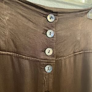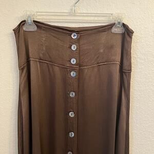 Raquel Allegra Button Front Skirt Large Moss Brown Maxi Satin Raw Edge Neutral