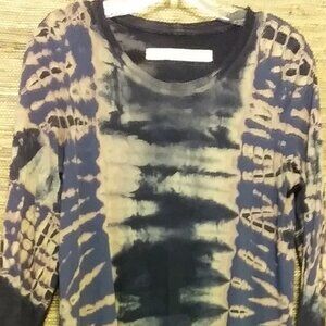 Raquel Allegra, Maxi Dress, Tie-Dye Dress, Boho Style, Blue Brown Black Dress, 100% Cotton, Soft Tee Feel, Size 2, Pit to Pit 20”, Sleeve 20”, Length 52”, Preloved Fashion, Made in USA, Side Pockets, Artsy Dress, Festival Ready, Designer Dress