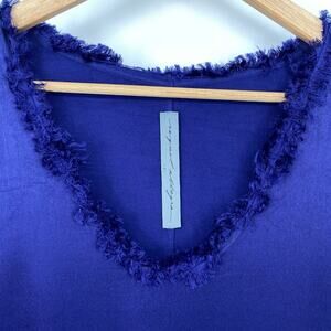 Raquel Allegra Dress Maxi Purple Blue Cap Sleeve V Neck Rayon Maxi Large