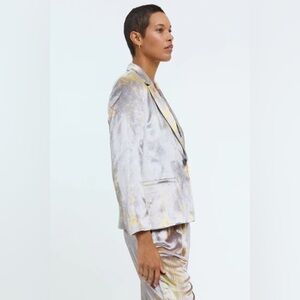 Each piece is hand-dyed, so pattern placement varies and is one-of-a-kind. Super versatile: wear together as luxe suiting or split them up for elevated separates