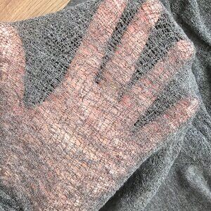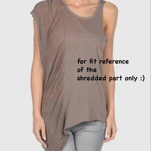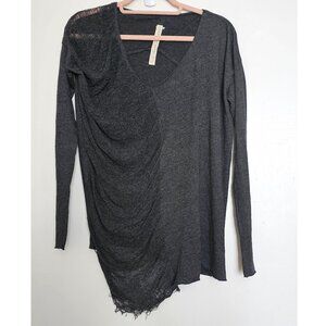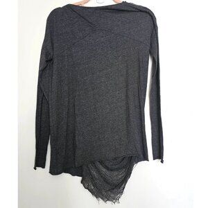 Raquel Allegra Long Sleeve Shredded Asymmetrical Top, M