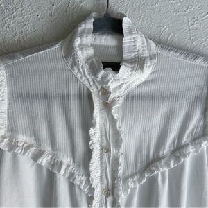 Raquel Allegra Luna Gibson Girl White Ruffle Blouse Sz 3 XL