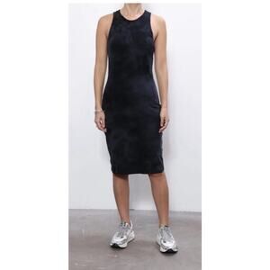 Raquel Allegra knee length classic jersey racerback dress in a hand dyed black tie dye. Details - 100% Cotton - Hand Wash - Made in Los Angeles