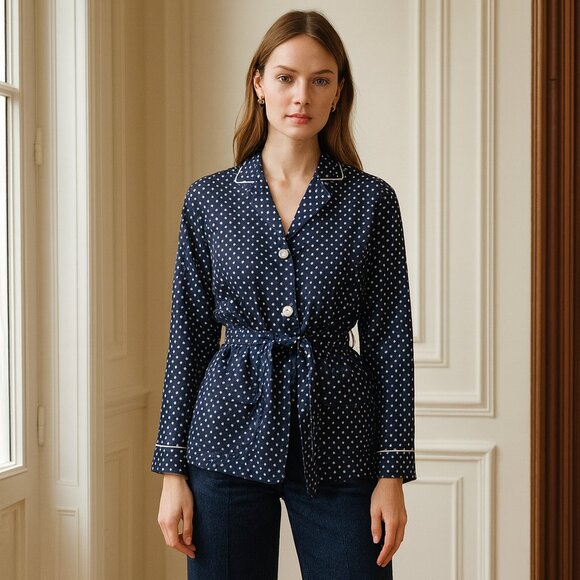 Raquel Allegra Relaxed Blazer in Navy Polka Dot
