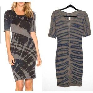 Raquel Allegra Signature Fitted Dress Brown Blue Tie Dye Bodycon SZ 2 (US L)