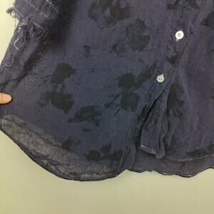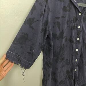 Raquel Allegra Silk Top Womens XS 0 Jacquard Black Blue Lauren Blouse Button Up