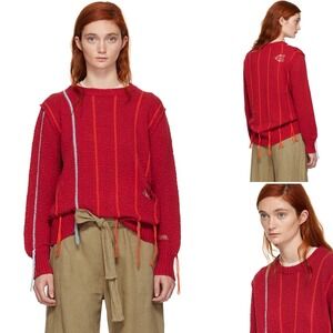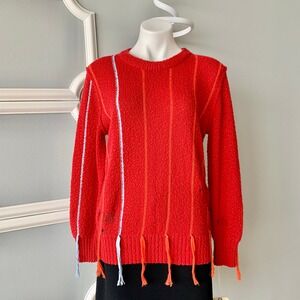 Raquel Allegra Striped Tassel Fringe Sweater in Red Size Medium