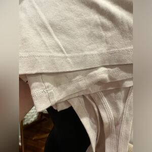 Sleeveless cotton jersey mid-length dress featuring hand-dyed pattern in tones of off-white and black. Rib knit scoop neck collar and armscyes. Racer back. Each item is unique.