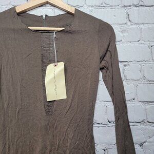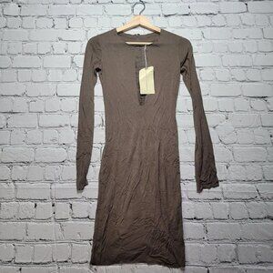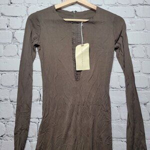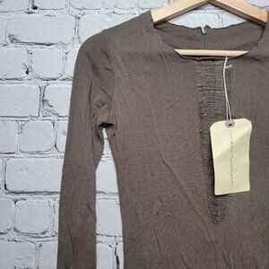 Raquel Allegra Taupe Torn V Neck Raw Cut Dress Size 1