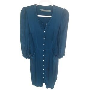 Raquel Allegra Women’s Silk Teal Button Front Midi Dress Size 0 XS