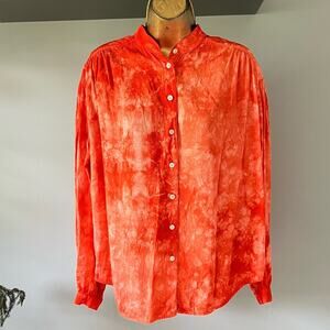Raquel Allegra Button down shirt - Red Tie Dye ripple satin size 0 (which is small- per their size chart, listed)