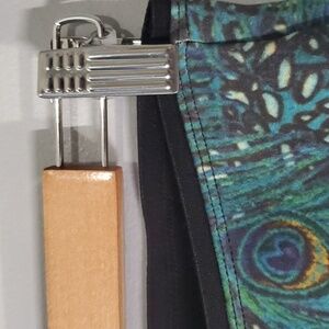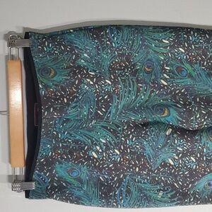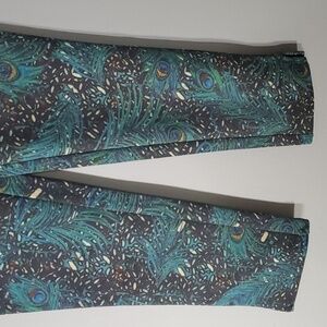 Rara Avis pants womens size 6 peacock pull on pull-on legging yoga pants beautiful vibrant thicker peacock feathers fabric green blue black white yellow red colorful feather legging pretty and unique look