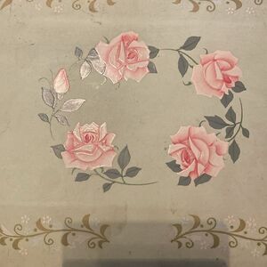 Rare 1940s Antique Lacquerware Pink Floral Mint Green Tokiwa Musical Jewelry Box