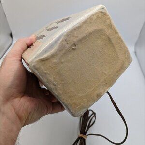 Heavy ceramic table lamp with felted bottom, measures approximately 12x5.5x4.5", NOT including the hardware. Including the hardware/lamp shade finial, it stands 22 inches tall. Shade NOT included. Heavy brass finial. Corded electric. Pristine condition with NO chips, cracks or crazing. True vintage, circa the late 1950s.