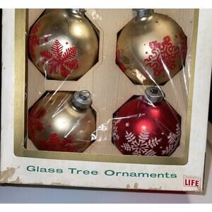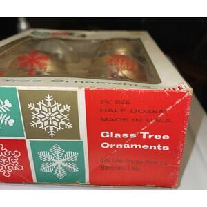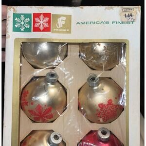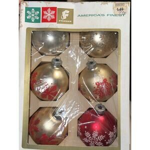 Rare 1950's Vintage Franke Red & White Micah Glass Christmas Ornaments In Box!