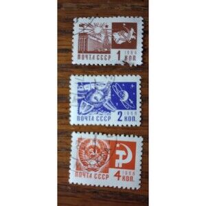 Collection of six vintage USSR postage stamps. All show postage marks. All in very good condition. Issued 1966.