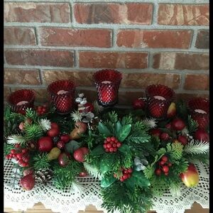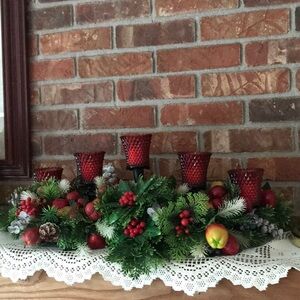 Rare 1970’s Christmas Ruby Glass Candle Centerpiece