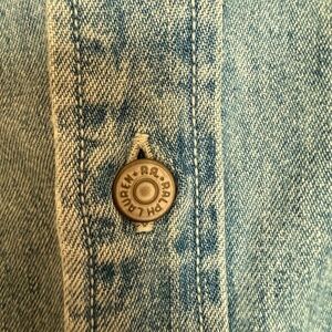 RARE / VINTAGE 1993 RRL (Double RL) Premium Heritage Line by Ralph Lauren- Denim button down work shirt, pointed collar, two pockets with button closure at chest. Three button down closure on sleeves. Buttons are original and personalized. This is an early 3-star tag edition from 1993, with the hem tag and was made in Malaysia. Men’s XL- Approximate measurements: Length- 33” Pit to pit- 27”. 100% quality Cotton. No breaks in stitching. Some images have shadows, not yellowing.