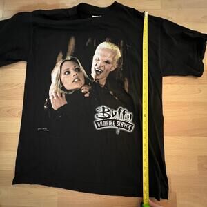 Authentic 1998 Buffy the Vampire Slayer vintage t-shirt featuring Buffy and Spike in a dramatic scene from the cult TV classic. This is a rare Blue Grape licensed original, not a reprint or modern bootleg.
