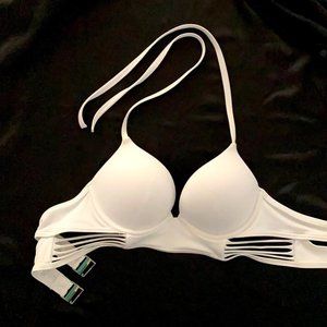 Rare 32B Bikini Top Swim Bombshell Longline Bikini Bra Ivory White Limited Ed