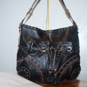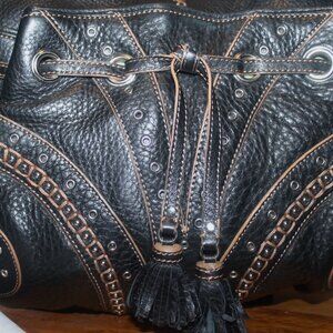 Rare $368 Cole Haan Grommet Hobo Tassel Embellished Leather Hobo Purse Bag