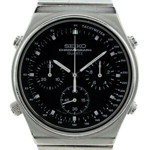 Rare 39mm Vintage Seiko Black Dial Chronograph Japan Quartz Watch Ref: 7A28-701A