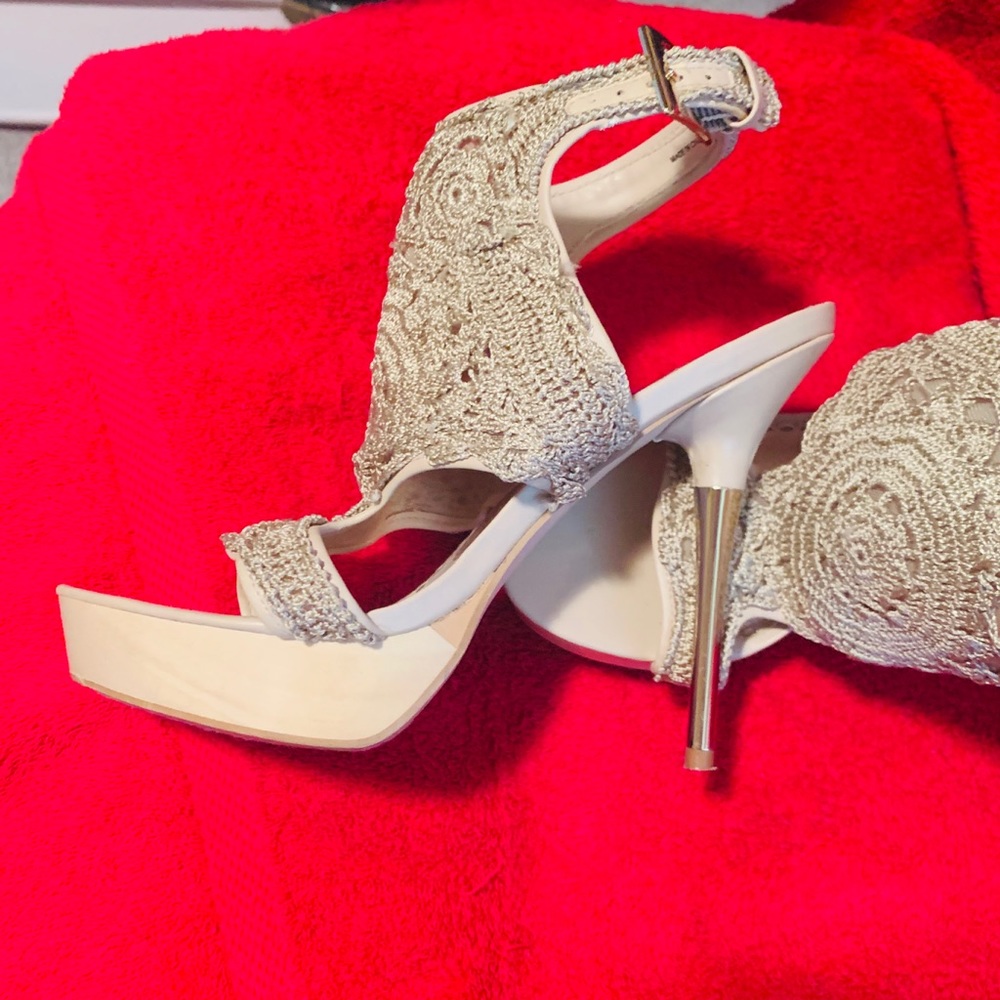 These breathless 5 inch heels are outstanding the material is intricate embroidery a definite a conversation starter