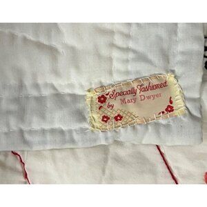 • Condition: Excellent – a hint of pink tinge near some red embroidery thread. Solid white reverse side. No stains or defects