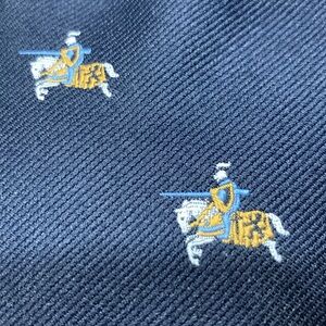 RARE 80’s VINTAGE WENBLY EMBROIDERED KNIGHTS NECKTIE. Amazing MEDIEVAL KNIGHTS ON HORSEBACK embroidered all across a navy blue poly twill background! Check him out: Lance,helmet,armor and shield! The ULTIMATE HERALDIC WARRIOR. Photos show measurements and condition. No smoke,odors or pets. No stains or tears. Knight,Medieval,helmet,Lance,suit of armor,shield,heraldic,crest,Sir Lancelot,Knights of the Round Table,King Arthur,Dungeons and Dragons, House of Dragons,Burberry