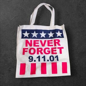 FREE Never Forget 9.11.01 canvas-style reusable tote bag lightweight, bold graphic design with patriotic stars and stripes