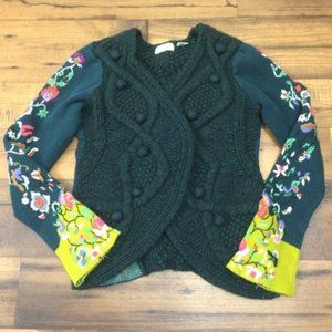 Rare ANTHRO Sleeping On Snow Embroidered Stitched Flora Cardigan Sweate…