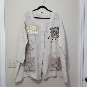 Features: Retail for 1330$, 3/4 sleeves, beaded, sequins, embroidered, oversized, 2 front pockets, scoop neck, 3 button closure,